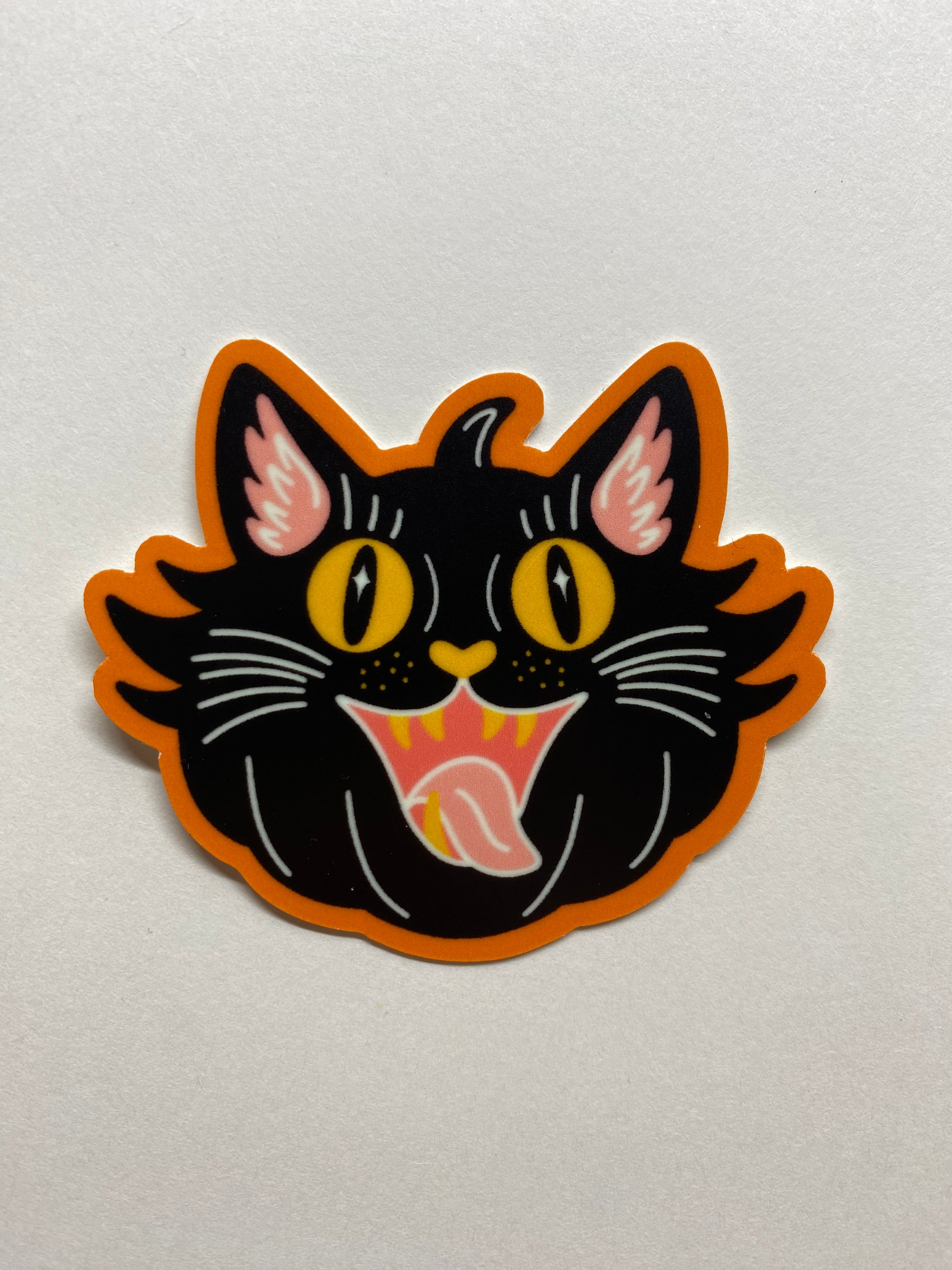 Light up your spooky season with our Behemoth sticker! Featuring a glow in the dark black cat, this sticker is perfect for cat lovers looking for a playful touch.